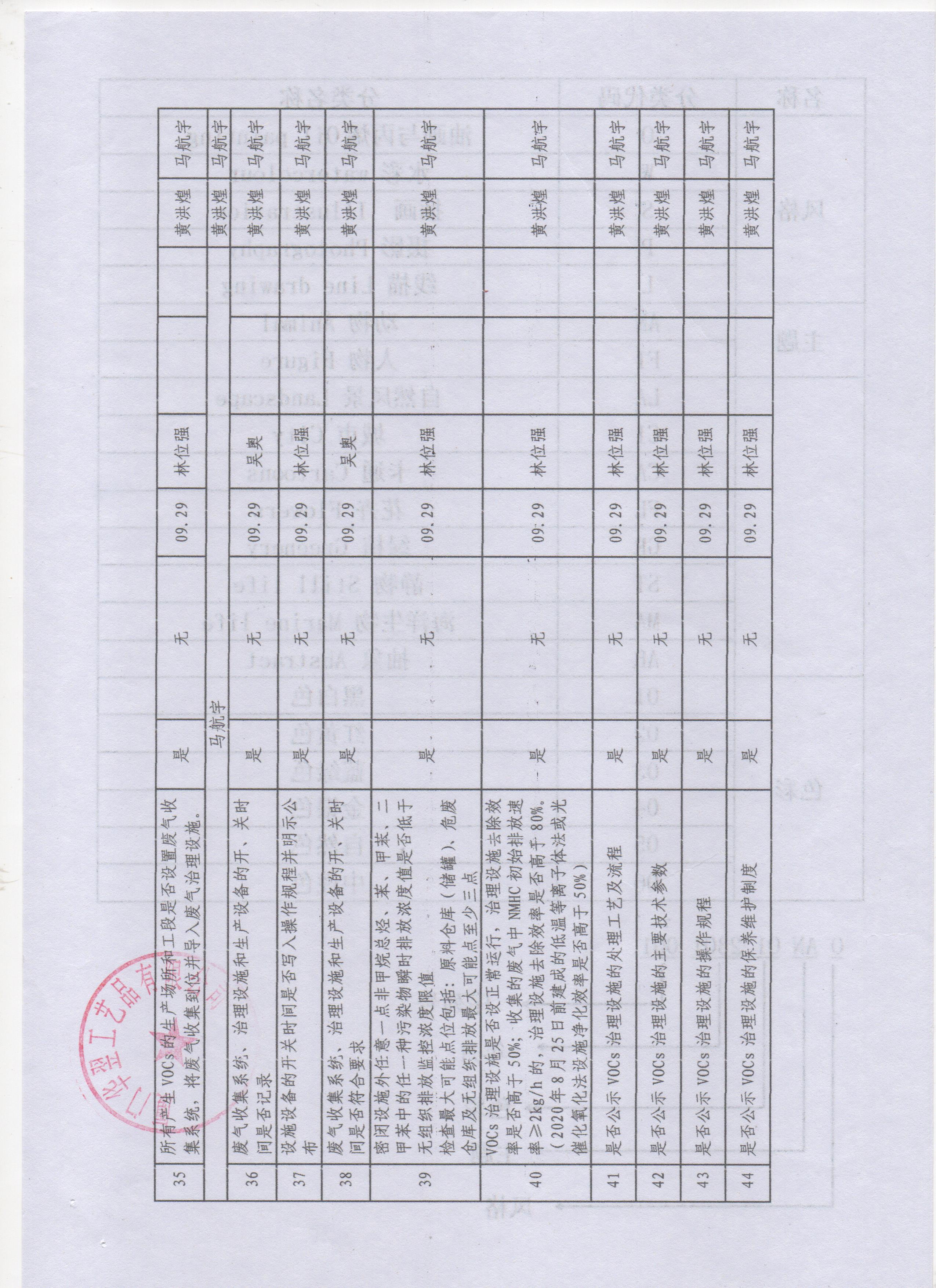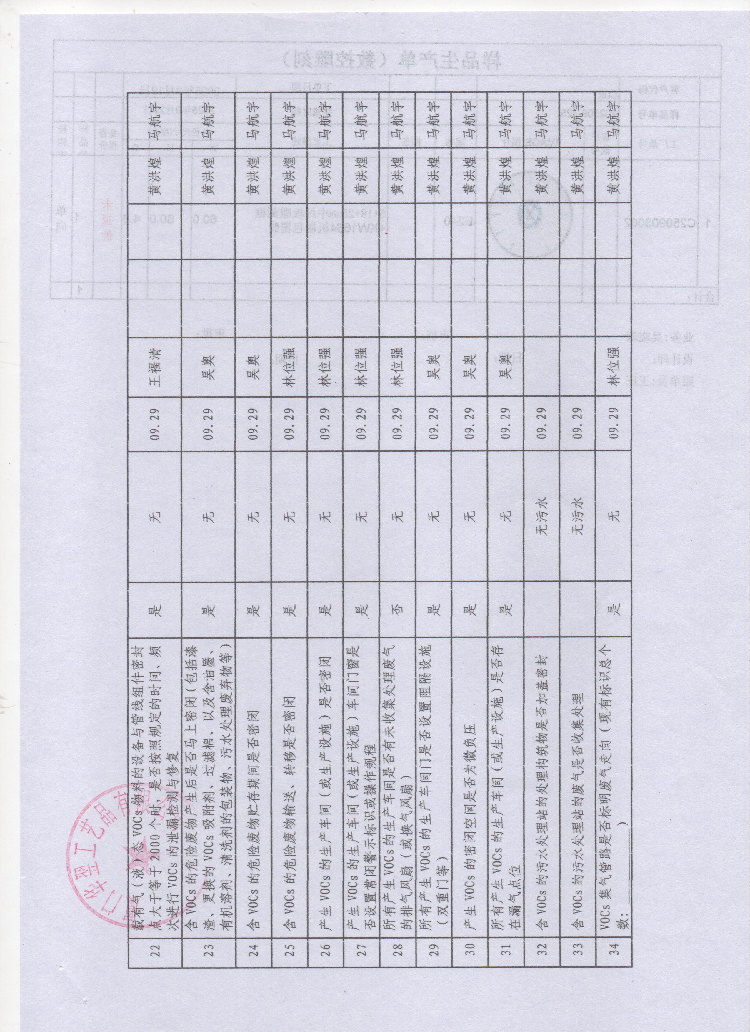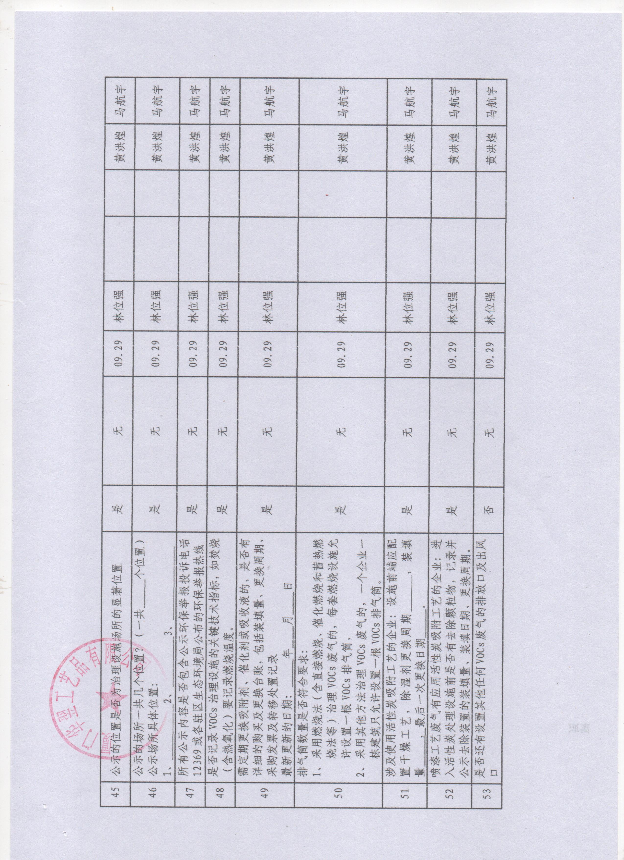 2025年厦门华翌工艺品有限公司第三季度voc自查表